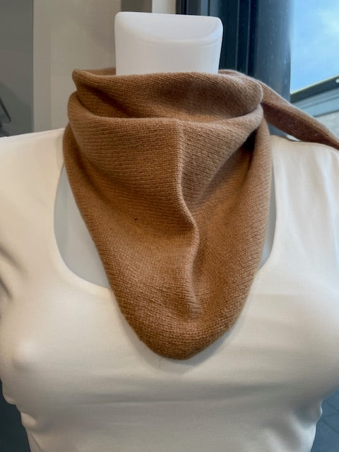 Pure wool triangle scarf in a versatile tan colour. Style it as a neck wrap, shoulder drape, or headpiece—the possibilities are endless. Luxuriously soft and naturally warm.