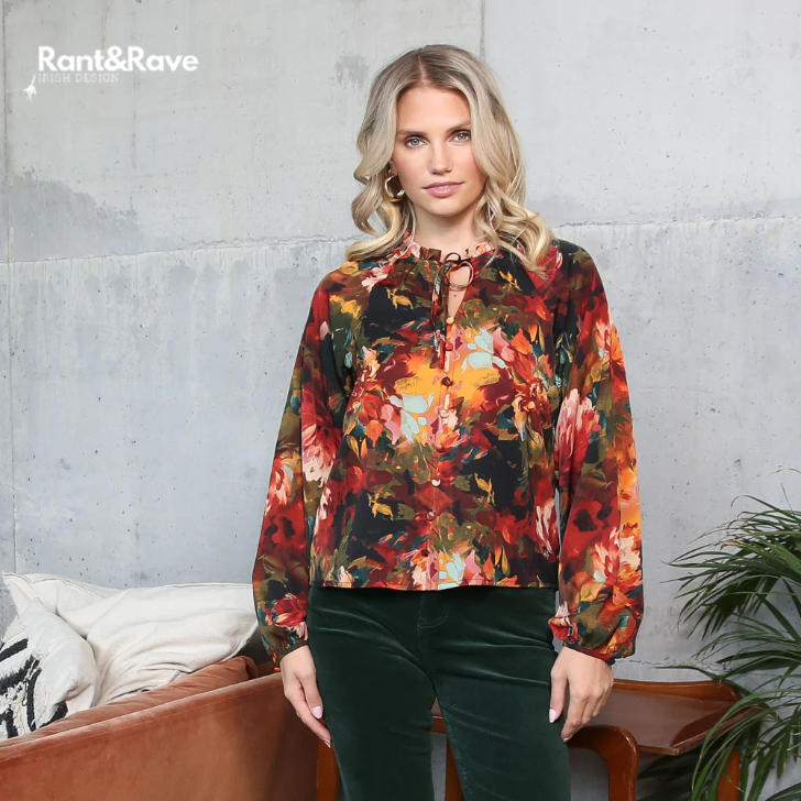 The Billie Blouse features a delicate frilled neck and a charming tie detail for added femininity. Covered buttons enhance its refined look, while the bold floral pattern brings a vibrant, stylish touch to your outfit. Perfect for elevating everyday wear with subtle elegance and confident flair.