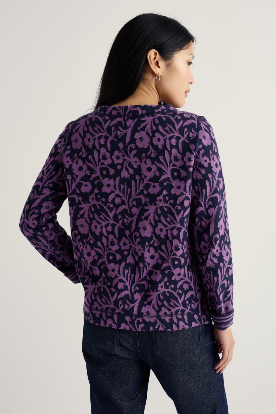 Comfortable and easy-to-wear, crafted from a textured jacquard fabric in a soft blend of organic cotton. Our Gwennol Jersey Top is complete with long sleeves and side splits at the hem for an effortless, easy fit. We love it worn with jeans and a statement belt, rolled at the cuffs for that everyday feel.