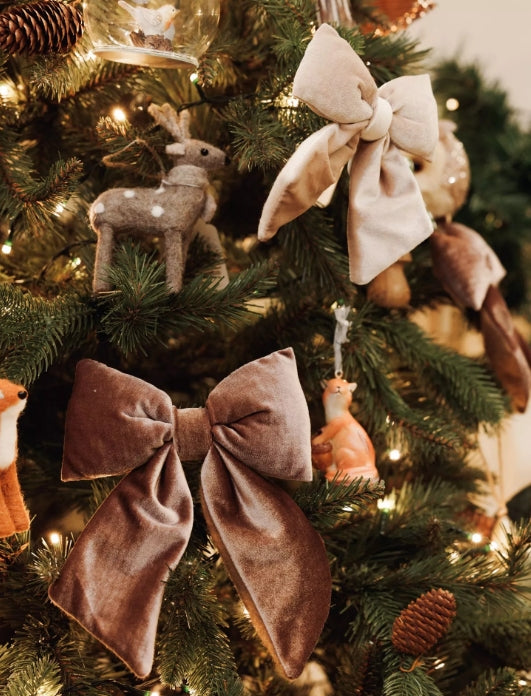 Celebrate the festive season with this velvet bow hanger in a lovely taupe colour. Its soft, luxurious texture adds a touch of elegance to your Christmas décor, making it ideal for hanging on your tree or around your home. This charming decoration brings a cozy, inviting feel to your holiday celebrations.