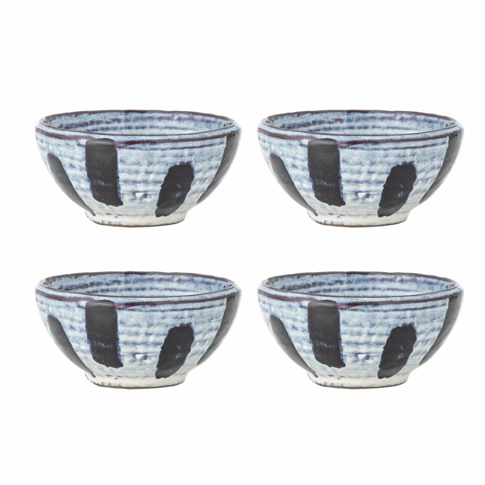 The Ever Bowl by Bloomingville is a set of four small bowls that can be used for serving dips, soy sauce, pesto, or small desserts. The bowls feature a hand-painted blue pattern on a reactive white glaze, giving each bowl a unique look. With their ribbed design, they add a rustic and charming touch to your table setting. The small size of the bowls makes them ideal for smaller servings or as decorative pieces in the kitchen.