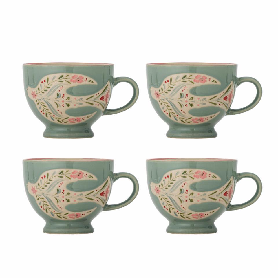 The Rosalynde Mug by Creative Collection is made of stoneware with a flared base and a pink-tinted rim. Handpainted with birds, flowers, and leafy details in soft tones. Small variations in pattern and colour intensity may occur, making each piece unique.