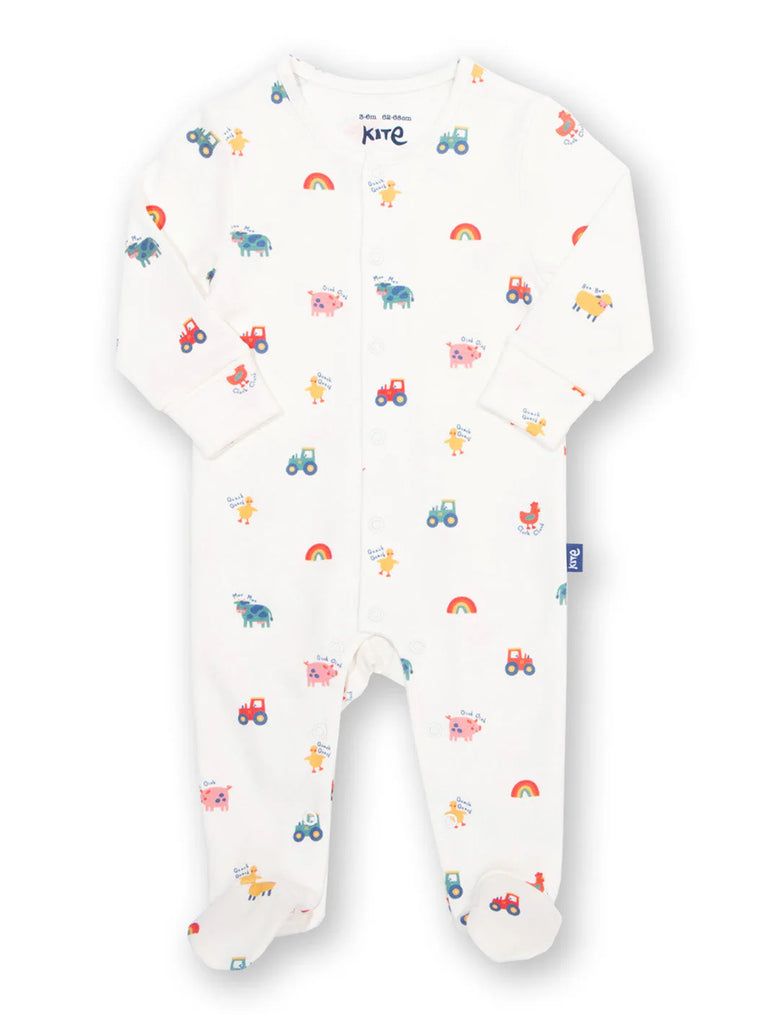 This beautifully soft sleepsuit offers easy peasy nappy changes. Featuring a full, y-shaped popper opening on both legs - integrated scratch mitts up to six months provide added protection for delicate young skin. Love the print? Take a look at the rest of our Old Macdonald designs to complete the look.