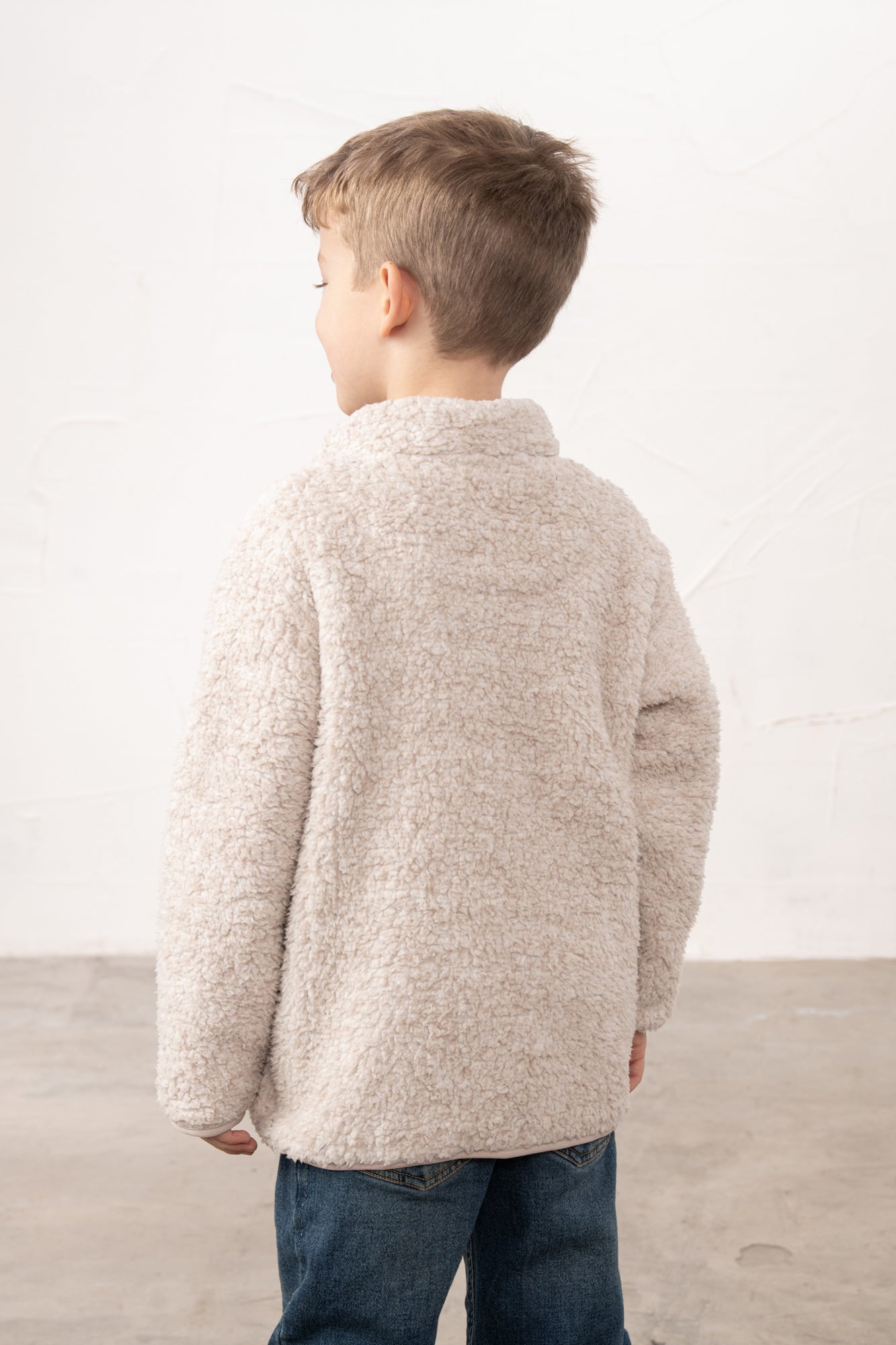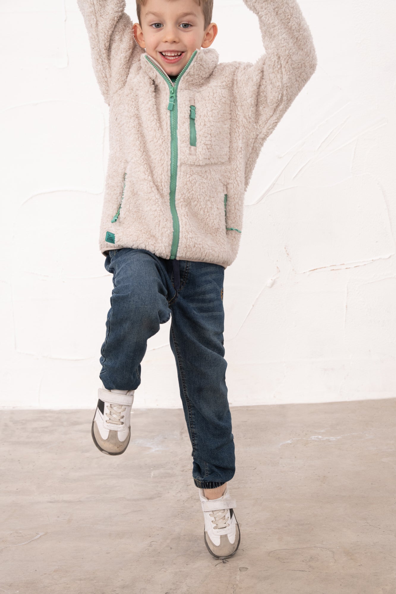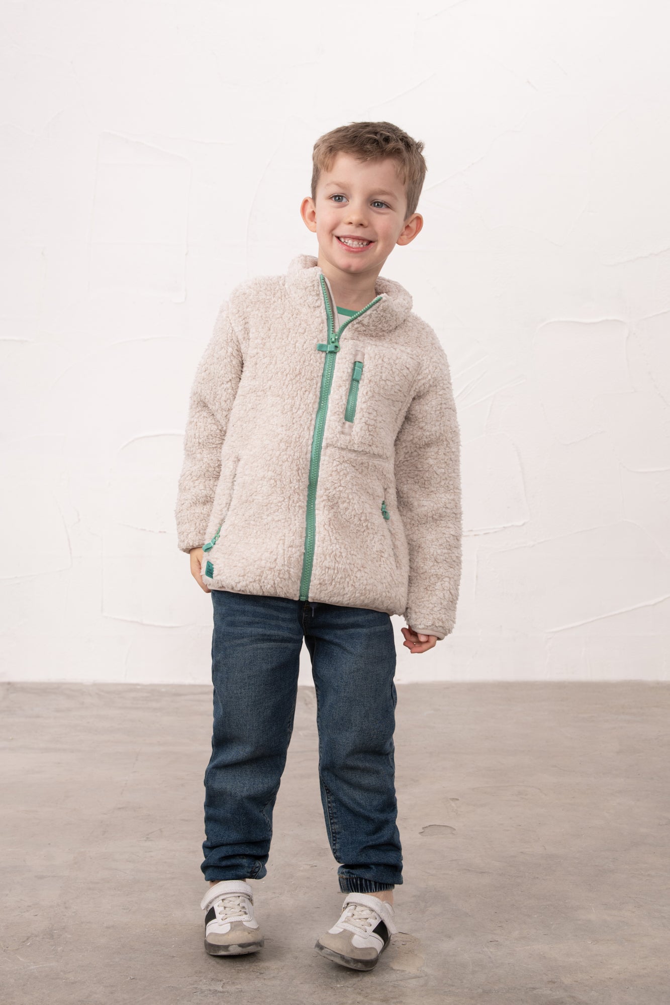 Kian Fleece in Irish Cream is a cosy sherpa number features eye-catching green contrast zips that add a cheeky pop of colour to your little boy's casual wardrobe. Perfect for lazy days at home or relaxed outings, it's the kind of piece that makes you want to stay snuggled up all day long. Soft, inviting, and effortlessly cool.