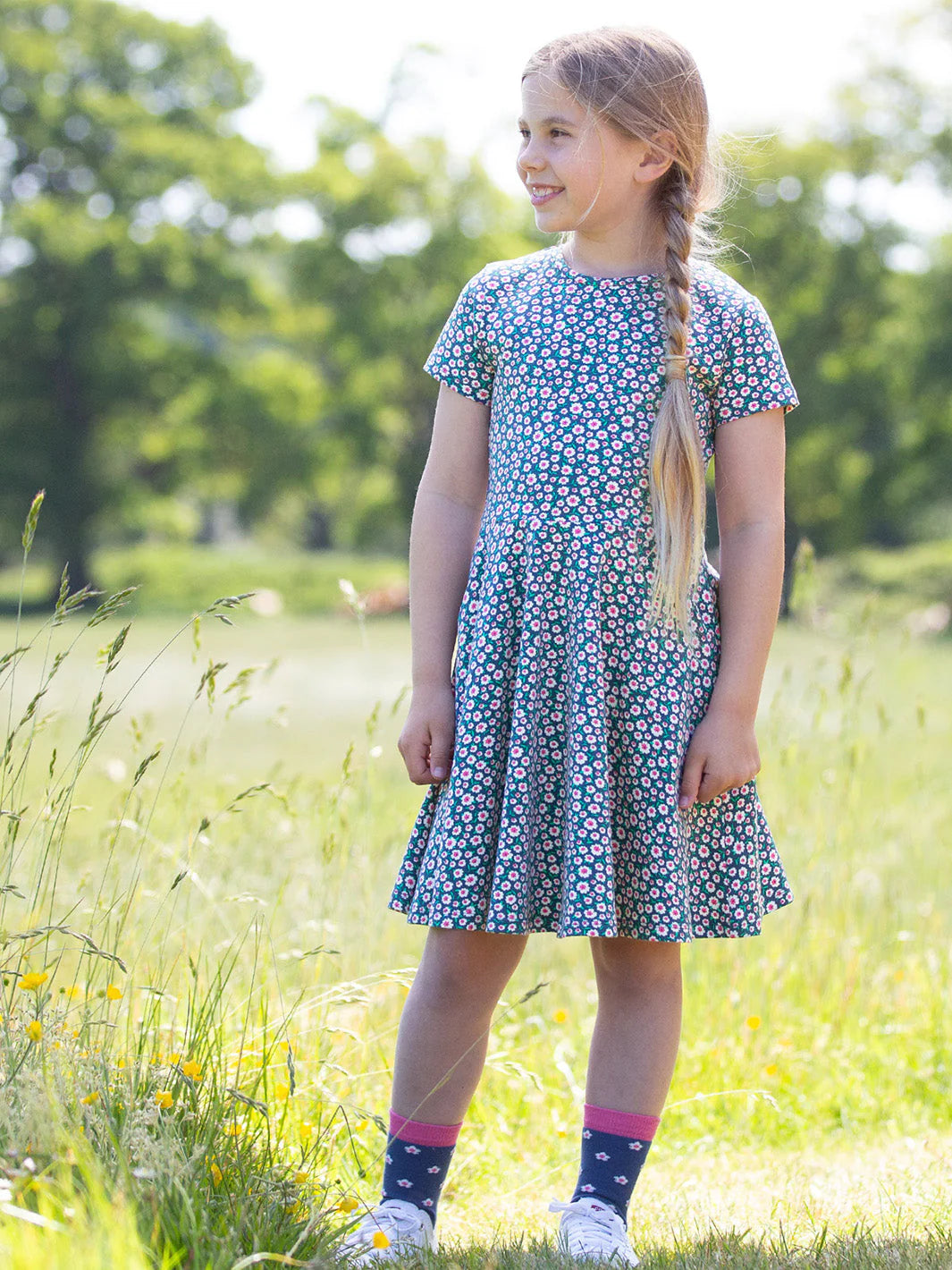 Our skater dress is a spinning sensation with plenty of fabric for maximum whirling and twirling! Made in our original Little Blossom print, this this special dress will become a guaranteed favourite.
