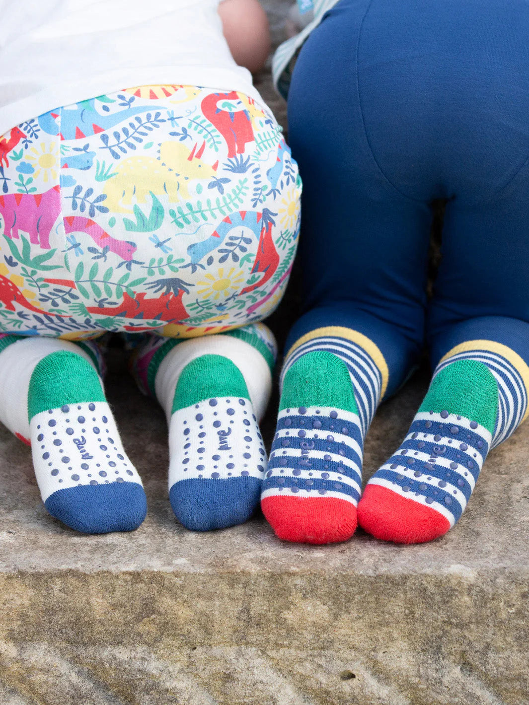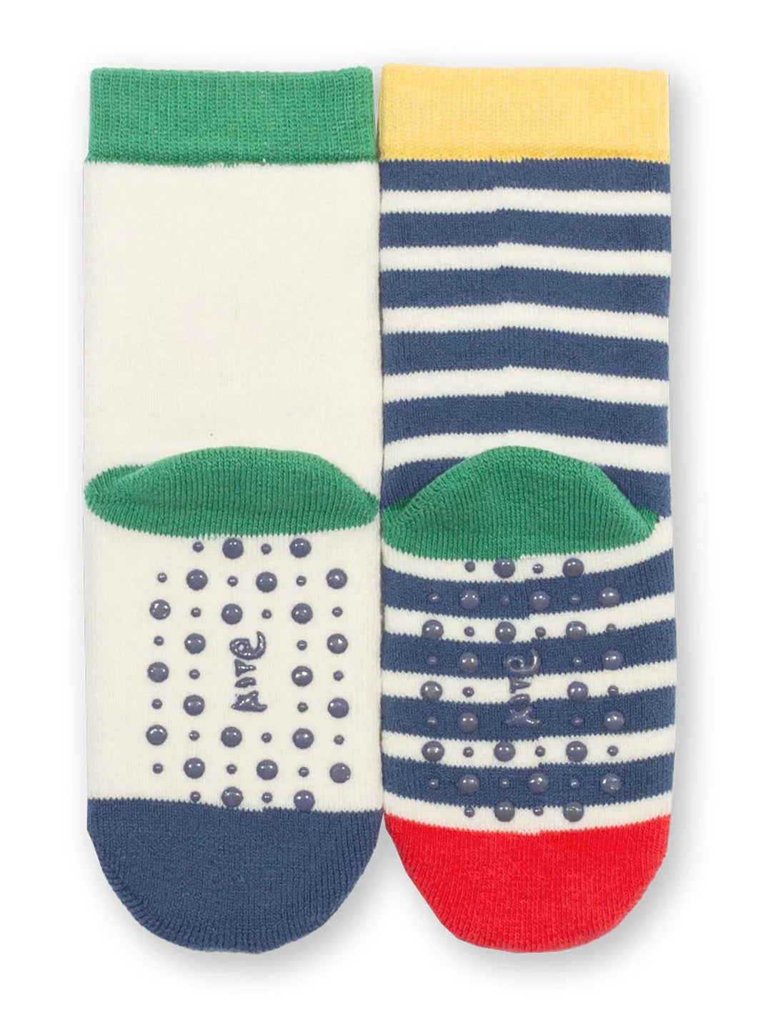 Super-soft organic cotton socks in our caterpillar face and colourful stripe designs. They come with useful grippy spots on the soles, perfect for little ones finding their feet and toddlers who tear around. These practical slipper-style socks add the finishing touch to any outfit and make a great gift idea too.