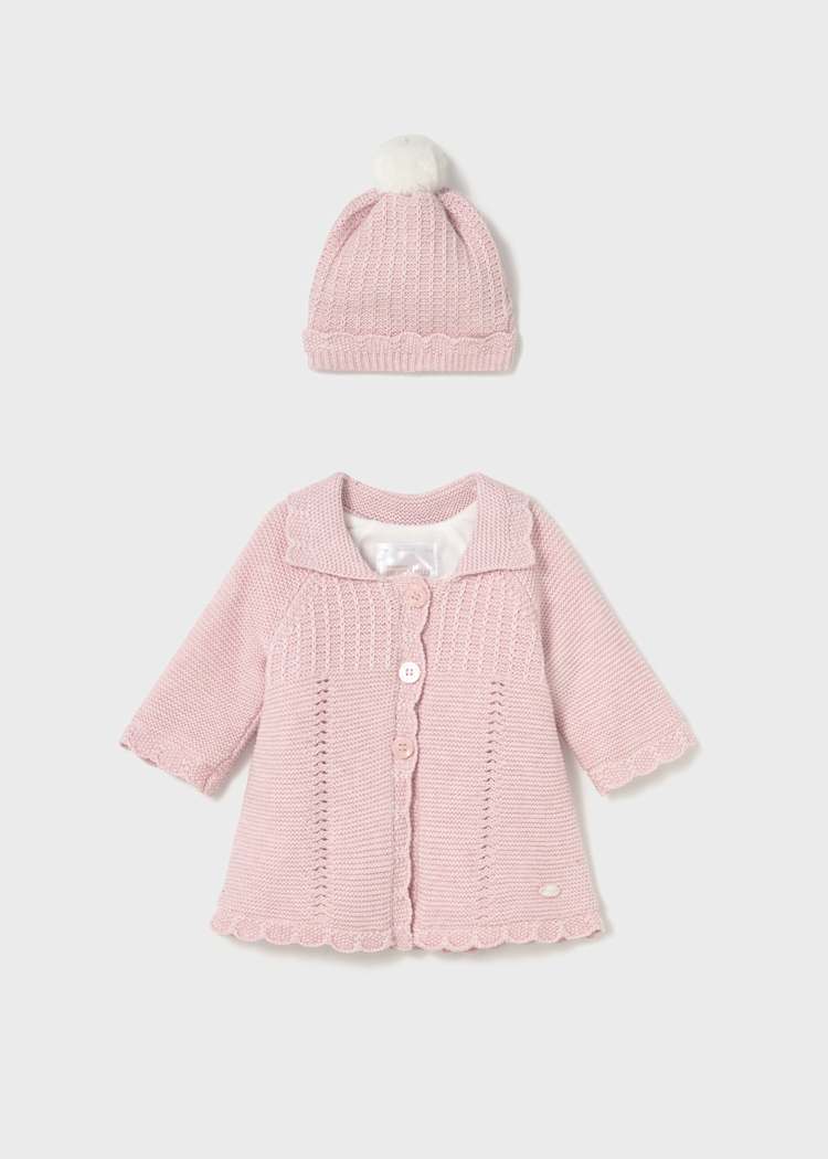 Long sleeved Coat for newborn. Button fastenings down the front. Lightweight quilted inner lining for better thermal insulation. Decorative elements: braided details, Ruffle details.