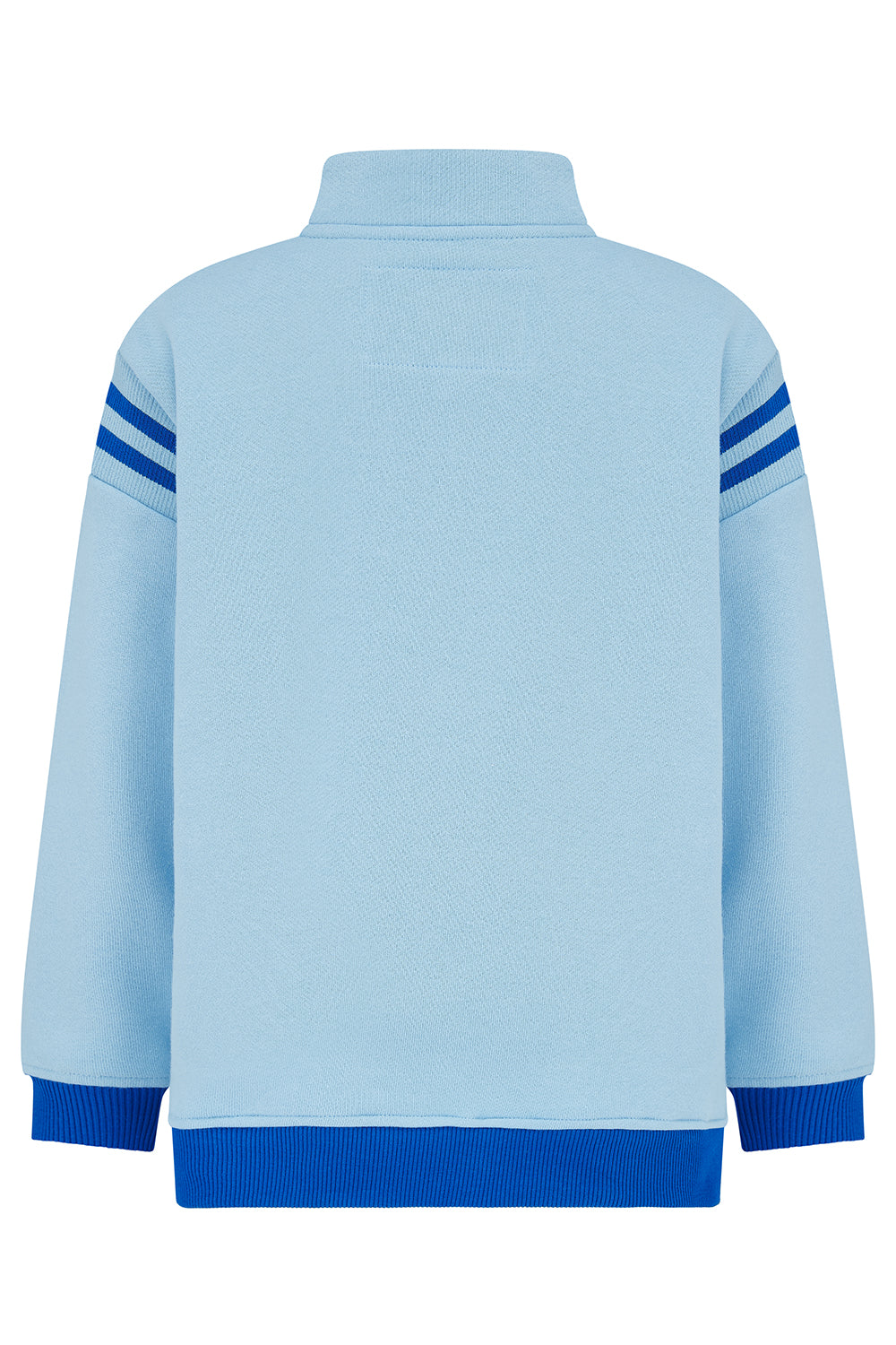 Meet the Jonah Jersey – where comfort meets countryside charm! This light blue jersey fleece features bold contrasting dark blue stripes and a fun blue tractor embroidery that'll have little ones grinning. The quarter zip design makes it easy to slip on and off, while the stand-up collar and matching blue cuffs add a sporty edge. Perfect for playtime or keeping cosy on cooler days, this jersey brings a splash of farmyard fun to any wardrobe.