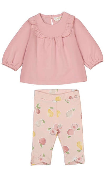 Adorable two-piece set featuring a charming pink top paired with delightful fruit-patterned leggings. Perfect for little ones who love colour and comfort, this sweet combination keeps your baby girl looking fresh and feeling cosy all day long. A playful wardrobe essential that's as fun as it is practical.