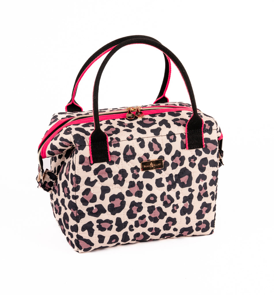 Wild style meets everyday function with our Oxford Quilted Leopard Convertible Lunch Bag . Made from recycled polyester, this eco-conscious bag features a stylish quilted effect and showcases our bold new leopard print design, elevated with its striking neon pink webbing details.