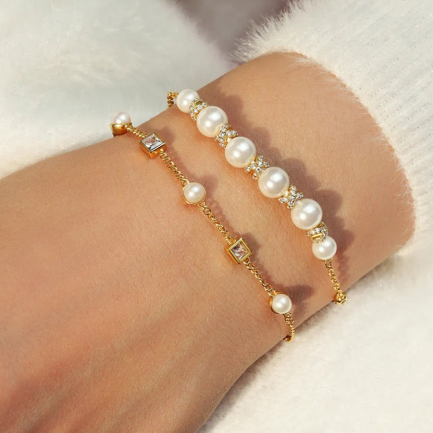 Ania Haie Bezel Set Cube & Pearl Bracelet - Gold