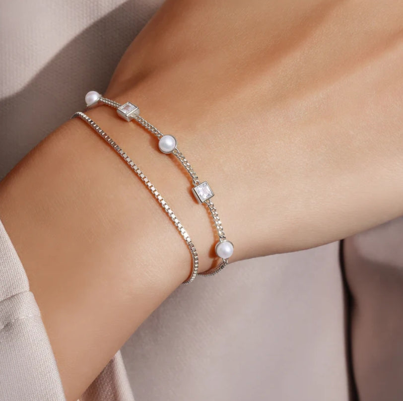 Ania Haie Bezel Set Cube & Pearl Bracelet - Silver