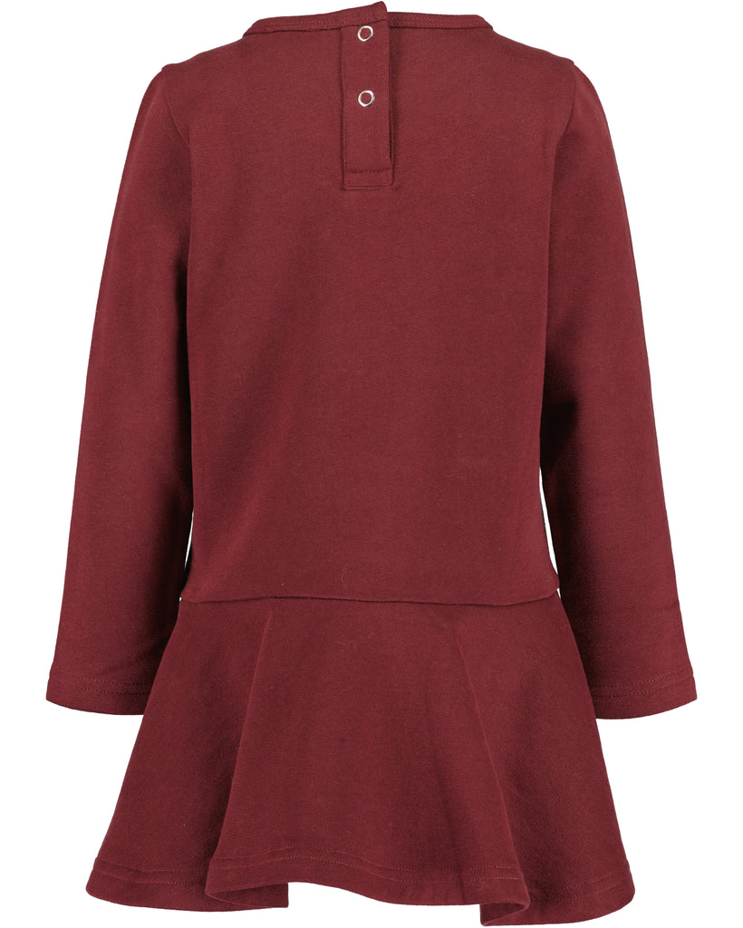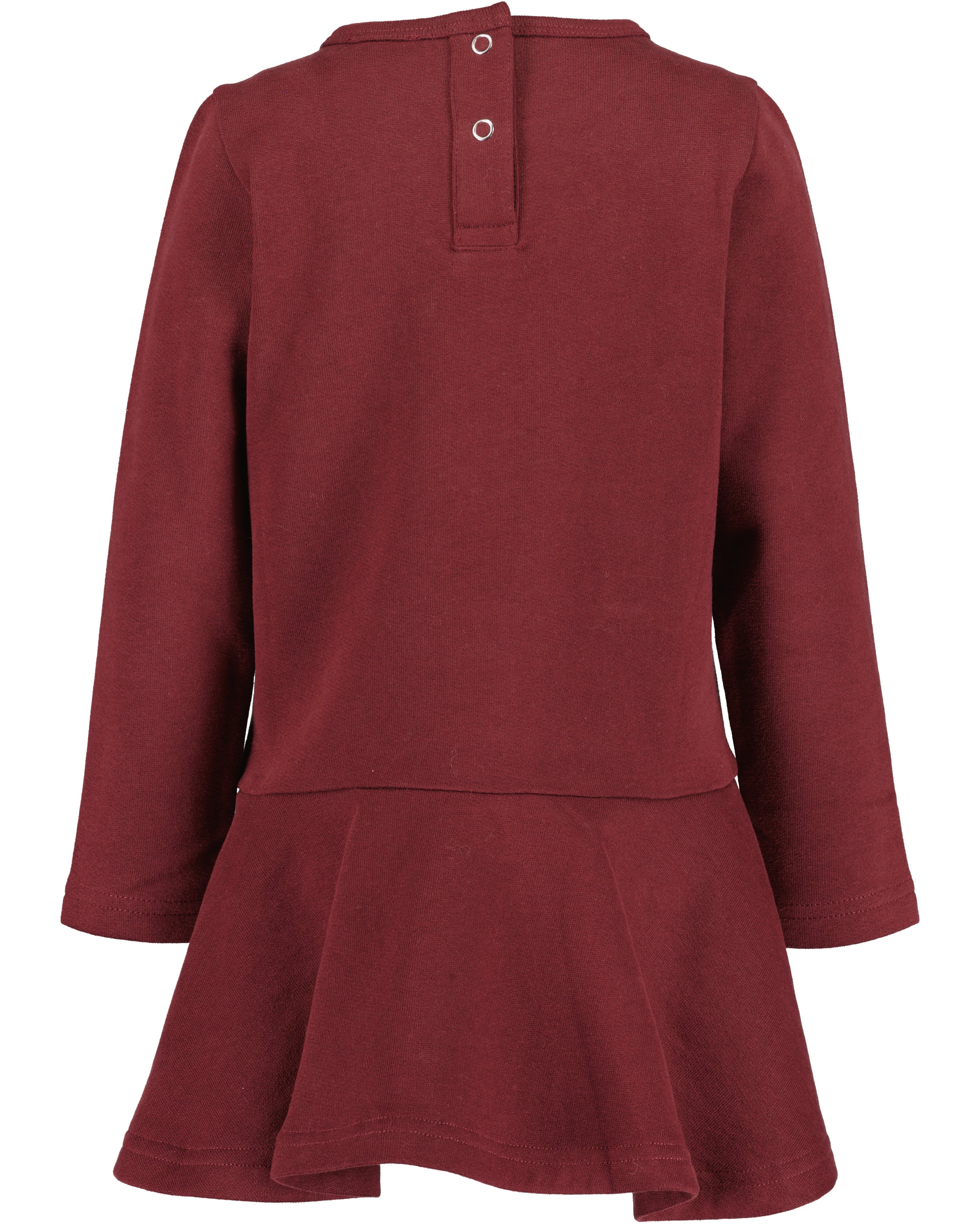 Girls burgundy sweater dress with sequin and embroidery detail. Ruffle skirt.