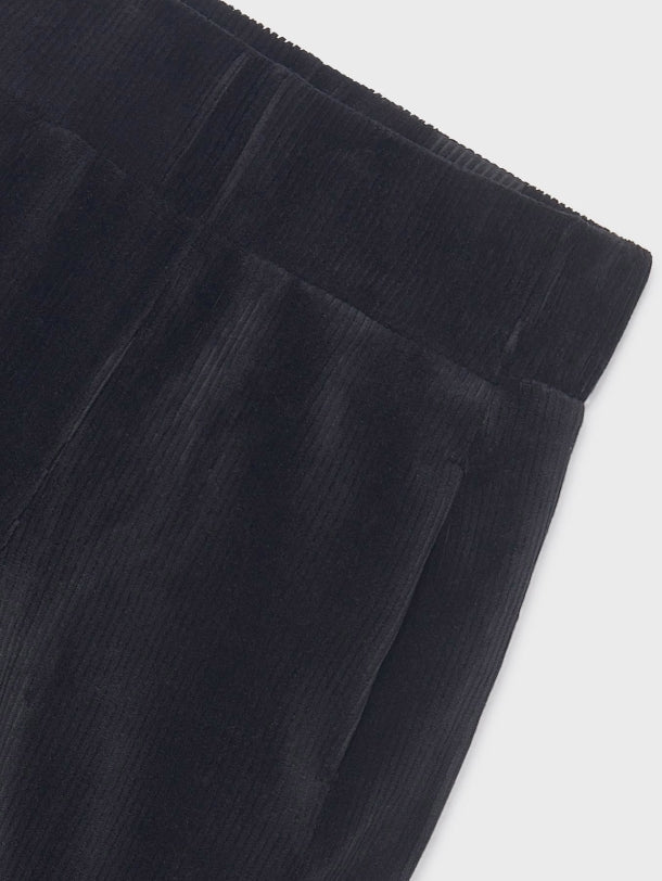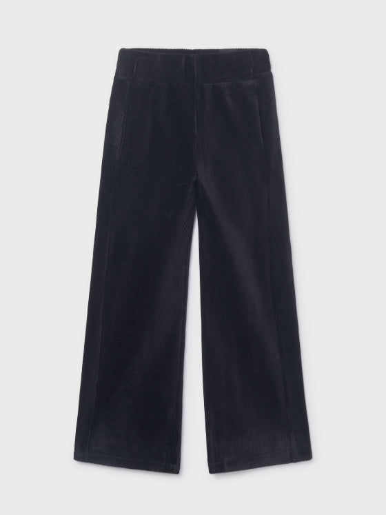 Flared style trousers for girl, wide at the bottom. Elasticated waistband. Warm corduroy knitted fabric of great comfort and softness.