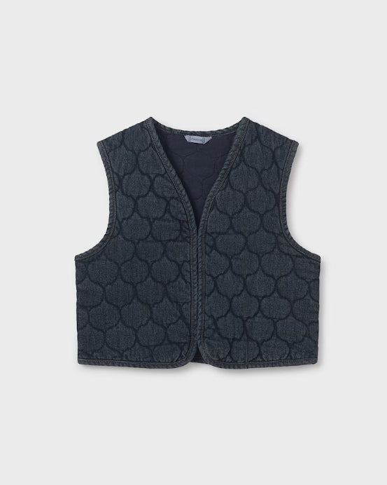 Gilet for girl. Made from comfortable denim fabric, perfect for everyday looks. Textile exterior with quilted effect. Includes an inner lining.
