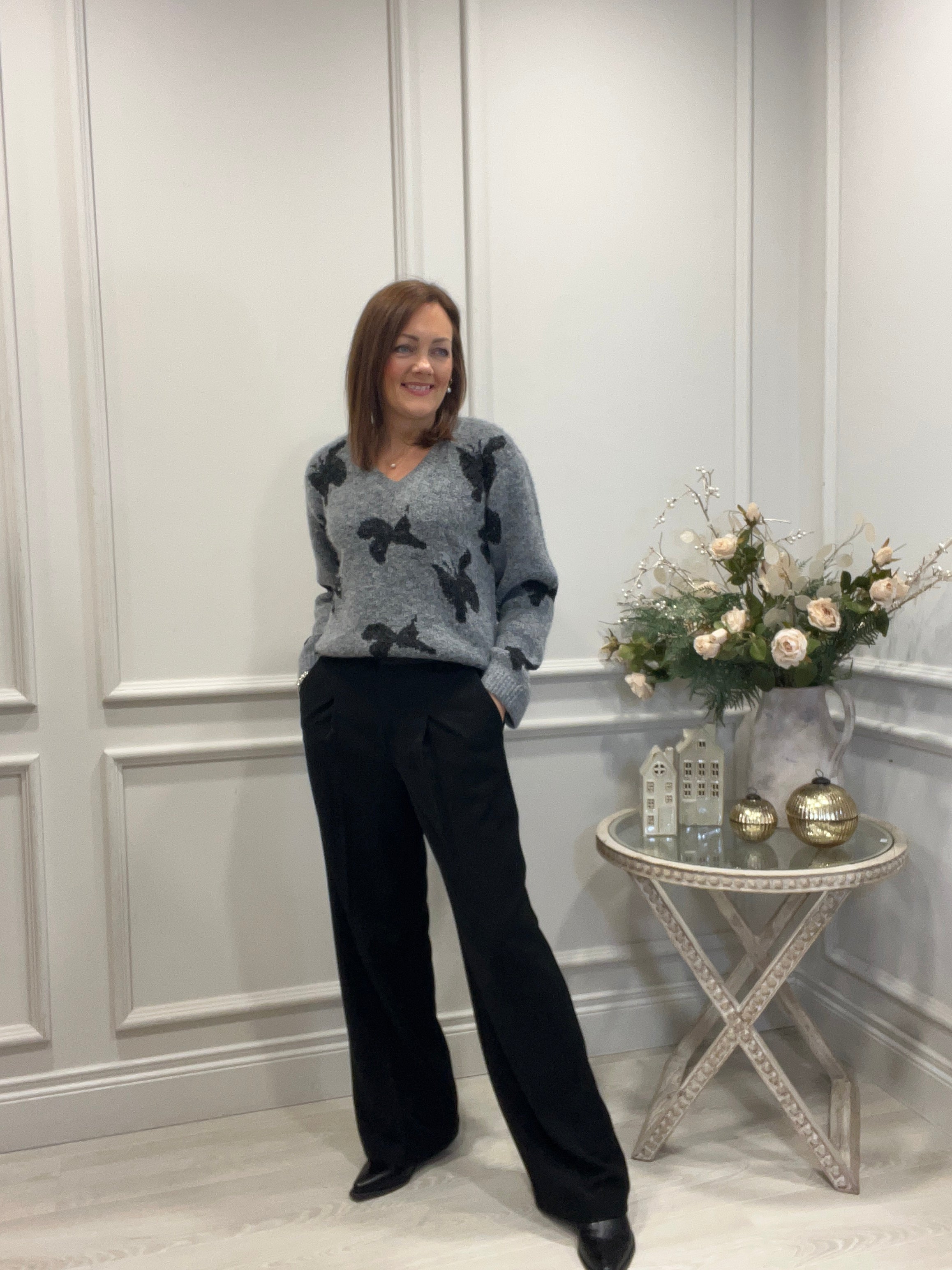 This women's V-neck pullover sweater features a relaxed fit, long sleeves, and a soft texture for optimal comfort. Its mid-length silhouette and eye-catching design details make it a versatile piece for everyday wear.