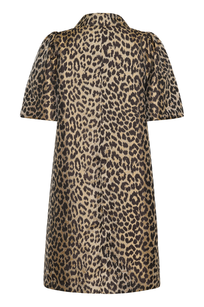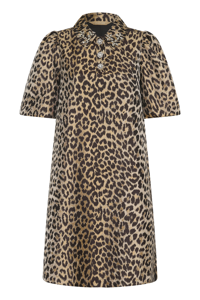 The Carol Dress offers a sophisticated take on leopard print with its knee-length cut, elegant puff sleeves, and detailed embellishments at the collar. This refined design brings a chic edge to your outfit, combining classic animal print with subtle decorative touches for a polished, memorable look. Perfect for occasions where style and confidence meet.