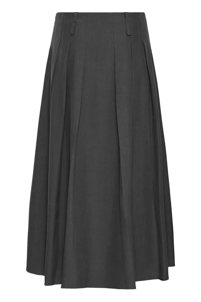 The Fava Skirt features a tailored fit and flare silhouette that elegantly accentuates the waist, enhanced by a fitted waistline for a flattering shape. Designed with belt loops, it offers versatility to accessorize and personalize your look. This sophisticated piece effortlessly combines classic structure with modern style, making it a refined addition to any wardrobe.