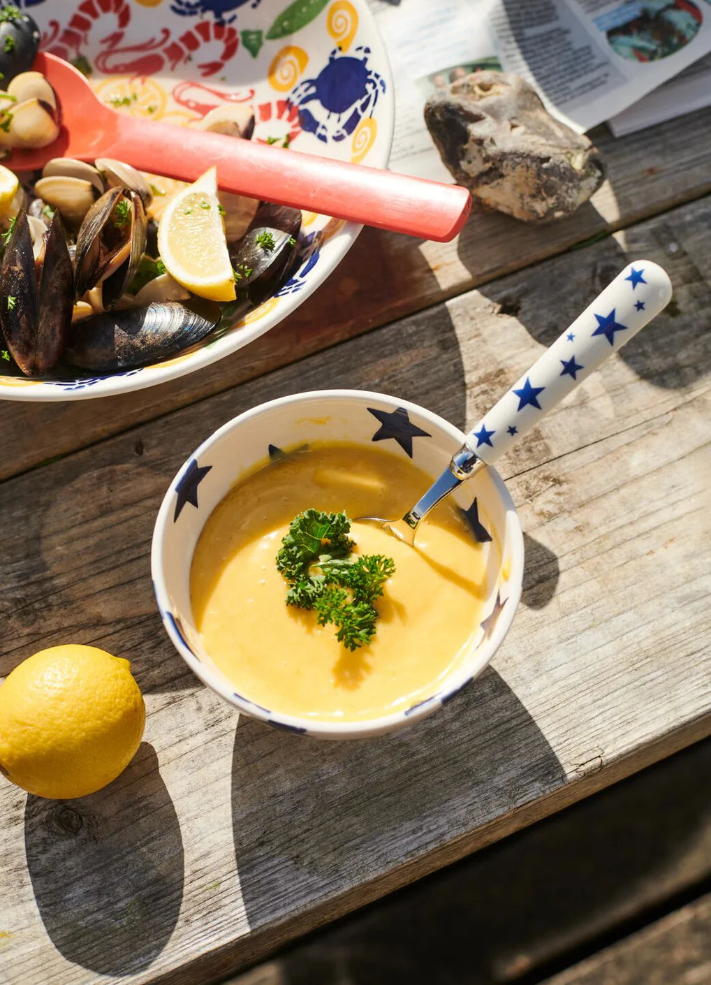 The blue star French bowl is Dishwasher safe. Lower temperature wash and liquid detergent recommended to maintain appearance. Not recommended for use in the microwave. Earthenware pottery can sometimes get hot in the microwave so we recommend you don’t put Emma Bridgewater pottery in the microwave. Not oven safe. Our pottery is not oven safe unless marked as cookware.
