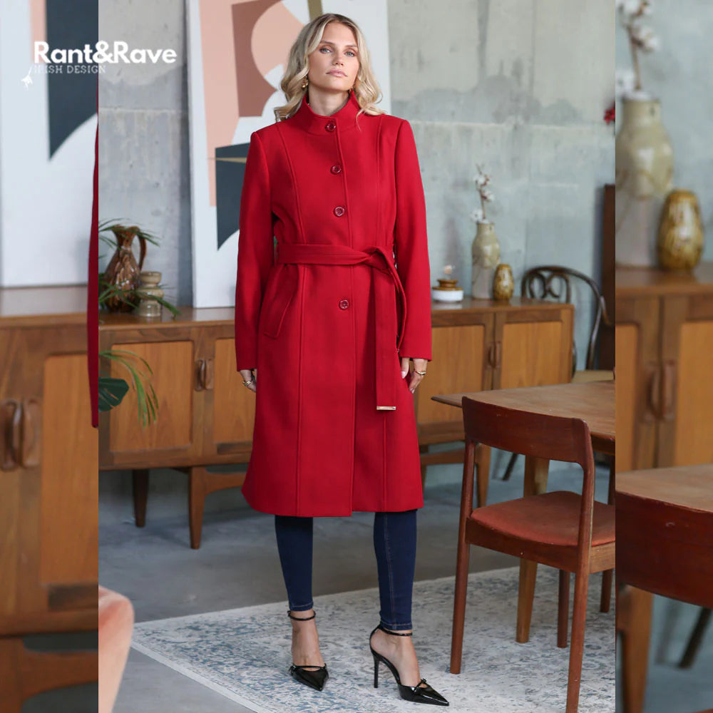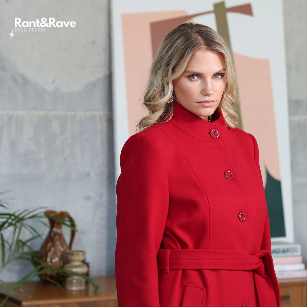Rant & Rave Amanda Coat in a stunning red hue. This chic coat combines style and warmth, featuring a tailored fit that flatters every silhouette. The vibrant color adds a pop of personality to any outfit, making it perfect for both casual outings and special occasions. With its soft fabric and comfortable design, you'll stay cozy while turning heads. Don't miss out on this must-have piece that effortlessly blends fashion and function!
