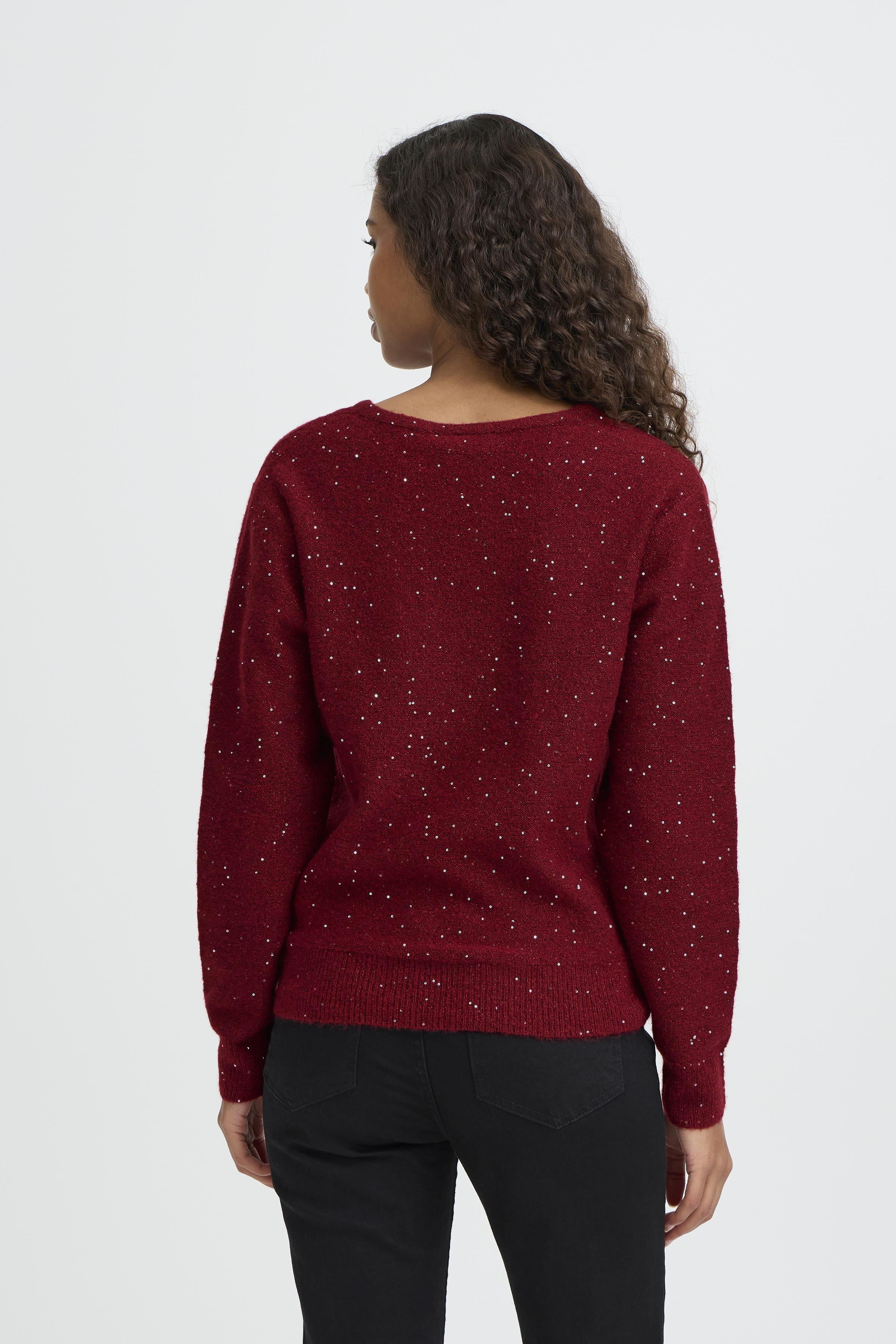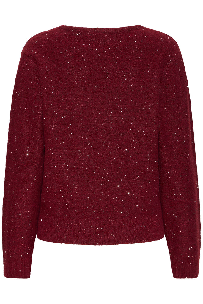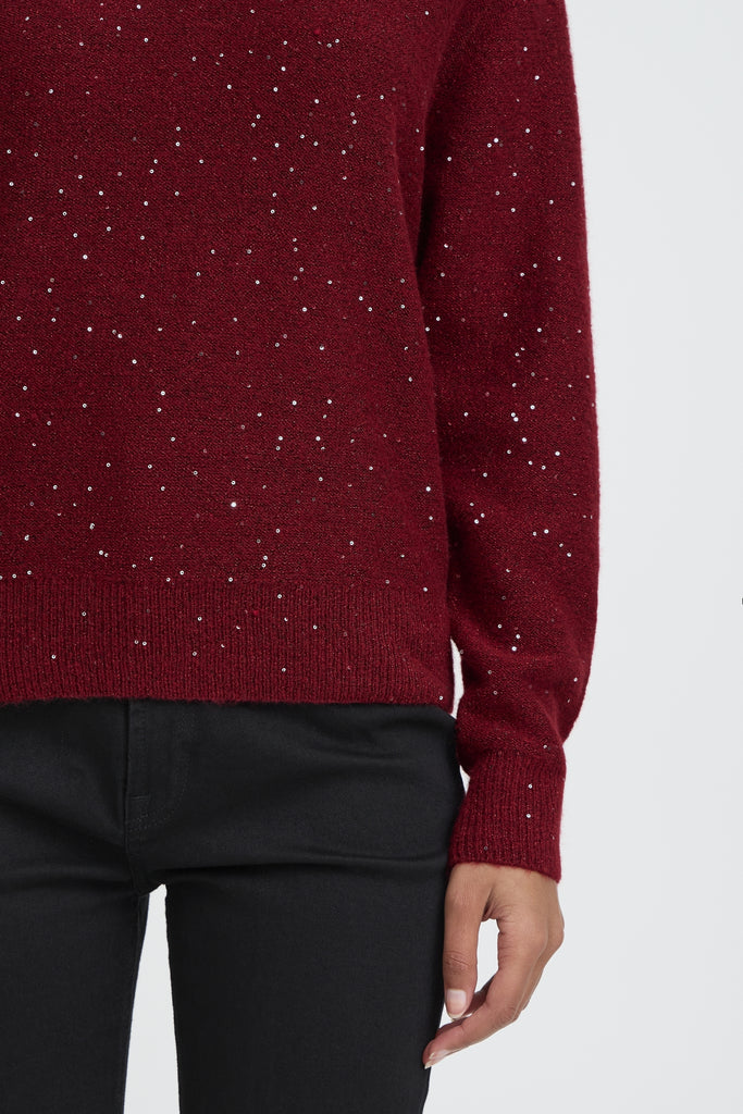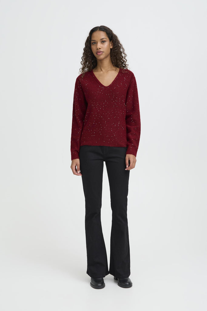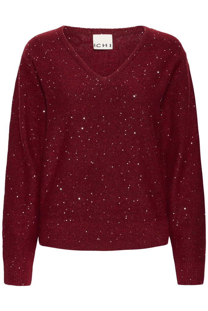 Discover the perfect blend of comfort and elegance with this v-neck knit pullover in a gorgeous deep red shade. Thoughtfully embellished with diamante accents, it adds a subtle shimmer that catches every glance without overwhelming your look. The soft knit fabric feels wonderful against the skin, while the flattering v-neckline works beautifully with layering or worn on its own.