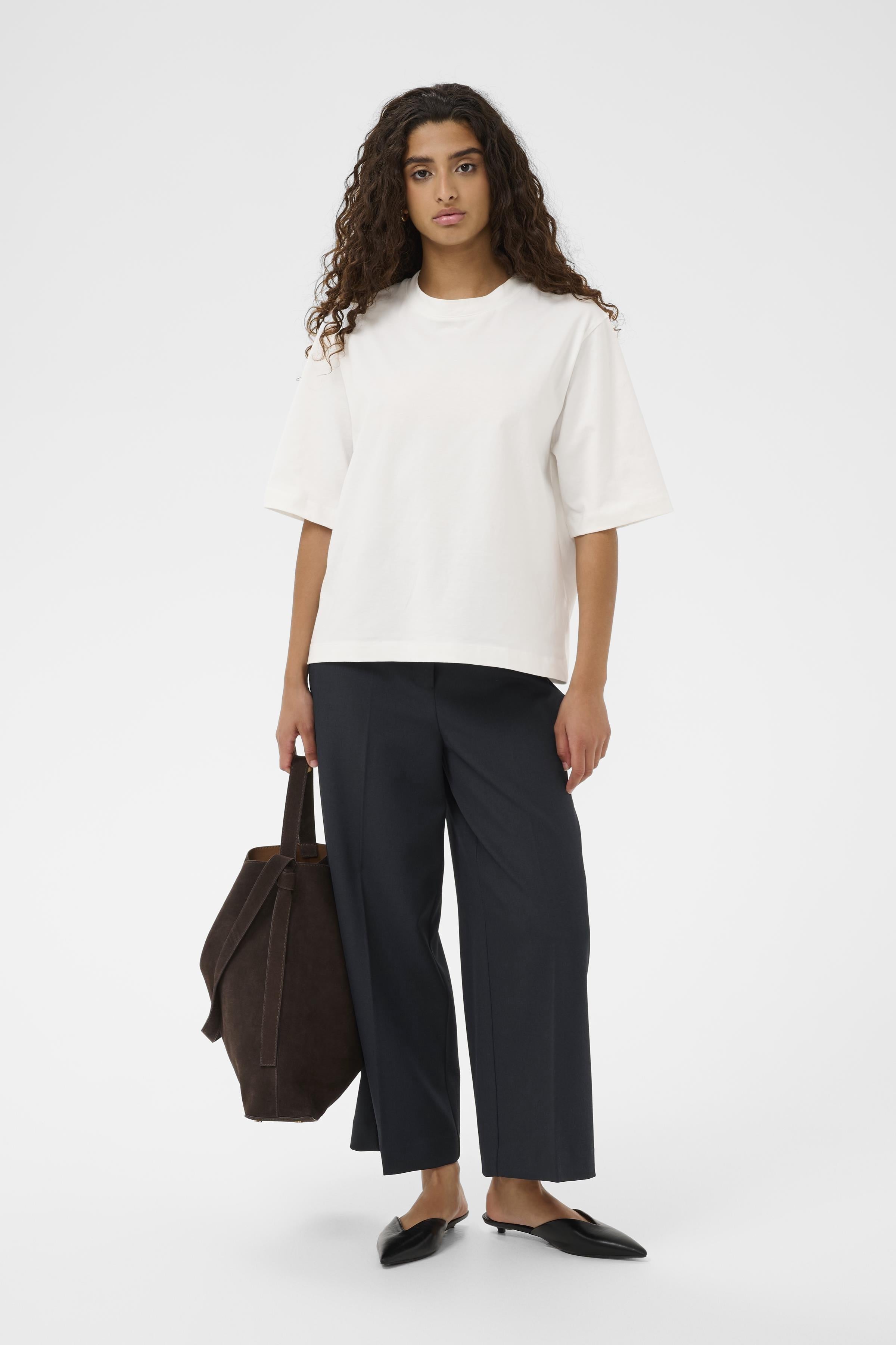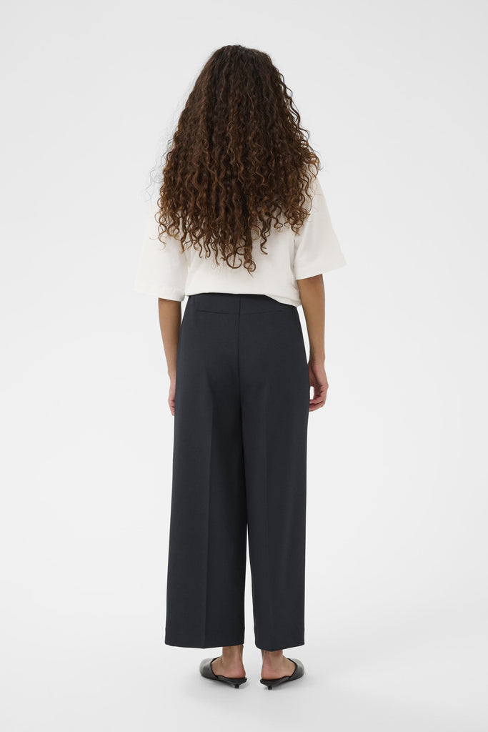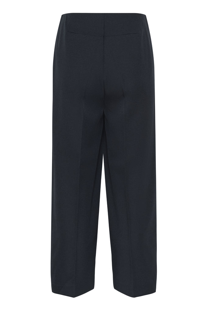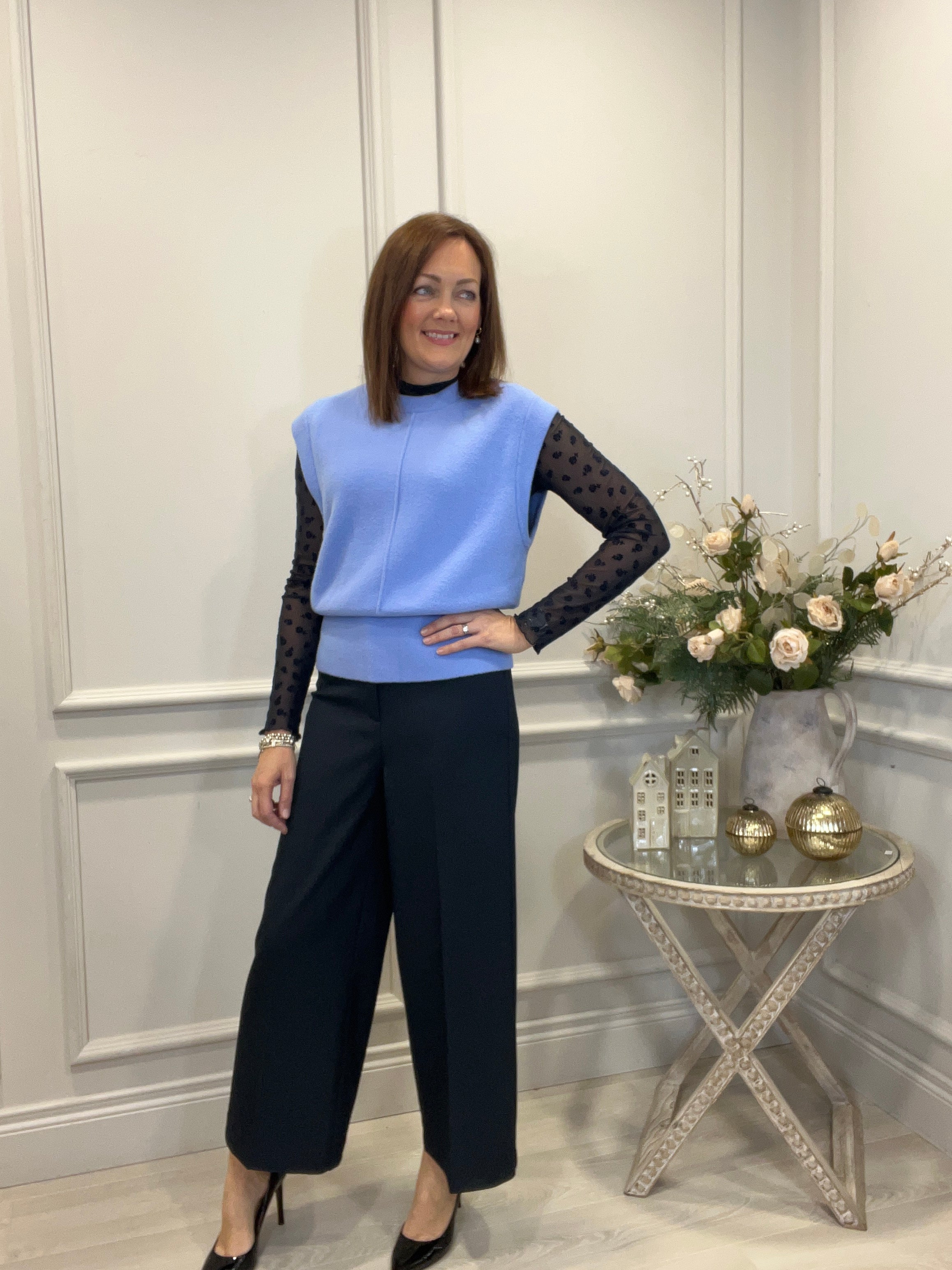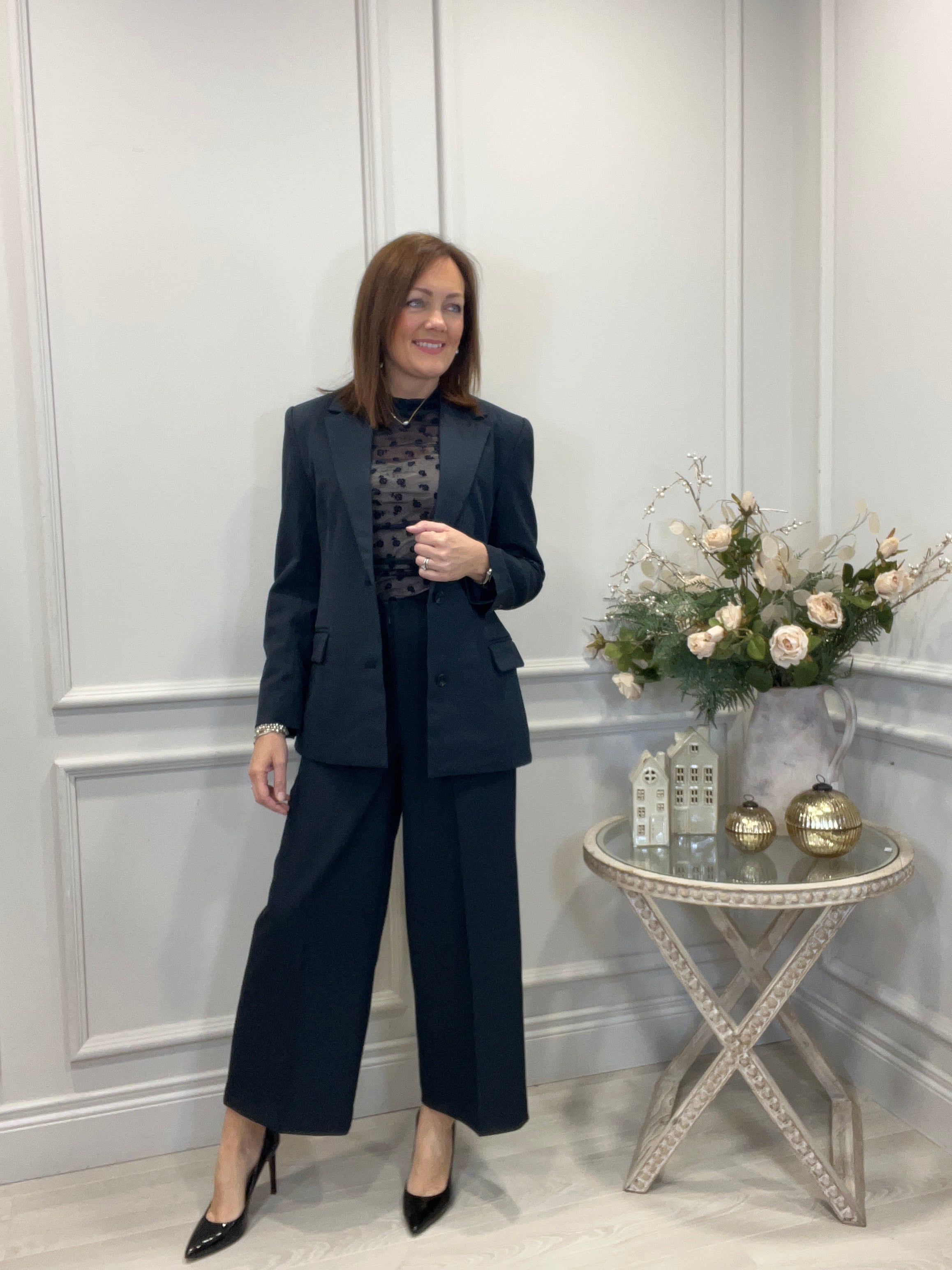 Introducing the Lilu Corinne Wide Cropped Trousers – your go-to piece for effortless style. Cut in a flattering wide-leg silhouette and cropped to hit just right, these navy trousers are designed to work as hard as you do. Pair them with a crisp white shirt for polished professionalism, or dress them down with a casual tee and trainers for weekend ease. Versatile, comfortable, and timelessly chic, they're the wardrobe essential you'll reach for again and again.