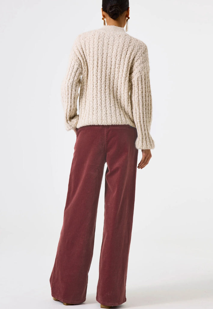 Stylish corduroy pants with a high waist. These pants feature a button and zip closure, a wide fit, and wide legs for a trendy look. This item is made of 99% cotton and 1% elastane, ensuring a comfortable and flexible fit.