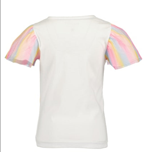 Magical unicorn adventures await in this charming t-shirt! Featuring a whimsical unicorn design on the front, it's paired with delightful butterfly sleeves that flutter with every movement. The soft, comfortable round neckline makes it perfect for everyday wear, or playing in the garden. A playful piece that celebrates imagination and wonder, this tee is sure to become a favourite in her wardrobe.