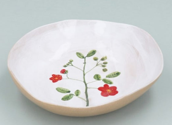 - A gorgeous meadow red flower stoneware pasta bowl