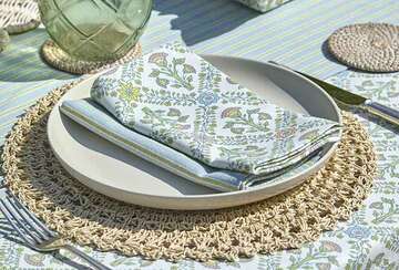 Napkin in 100% cotton in our Trellis print. Set of 4 tied with jute tape.