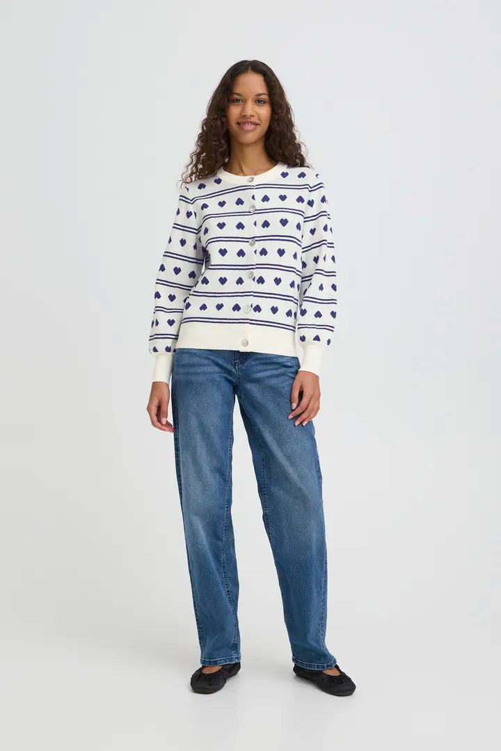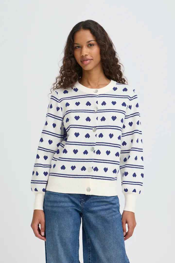 Wrap yourself in cosy charm with this delightful long sleeve cardigan, adorned with sweet blue hearts that bring a touch of whimsy to your everyday wardrobe. The pearlised effect buttons add a subtle shimmer and sophistication, catching the light beautifully as you move. Perfect for layering over your favourite outfits, this piece combines comfort with character—ideal for those moments when you want to feel both snug and stylish. A playful essential that celebrates the joy of getting dressed.
