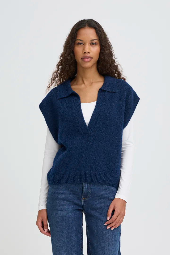 Meet your new go-to layer! This sleeveless knitted slipover in a gorgeous blueprint shade is the ultimate wardrobe chameleon. Throw it over a crisp white shirt for polished sophistication, or pair it with a cosy jumper for extra warmth. The timeless knit construction means it'll stick around in your rotation for years to come. Versatile, chic, and endlessly wearable—what's not to love?