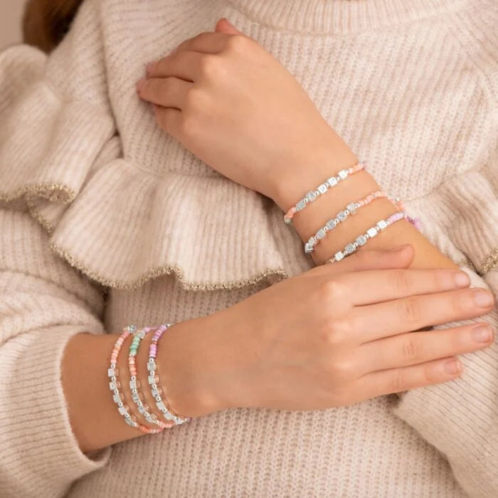 Our adorable Happy Little Moments Collection is now available for little wrists... Say hello to the Kids' Happy Little Moments Collection! Featuring the same beaded designs and threaded with multicoloured natural shells, alphabet beads, twinkling charms and coastal motifs, these stackable styles are perfect for celebrating special moments with little ones in the cutest way. With its circular starburst-print presentation card and blush pink hanging ribbon, our Kids' Happy Little Moments 'Birthday Wish' Bracelet In Silver Plating radiates the happiest vibes!