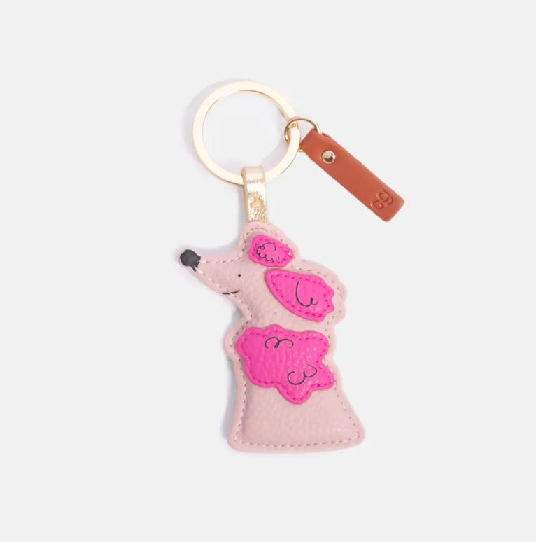 A leather look keyring in a cute pink poodle shape. Can be used as a traditional keyring or as a bag charm.
