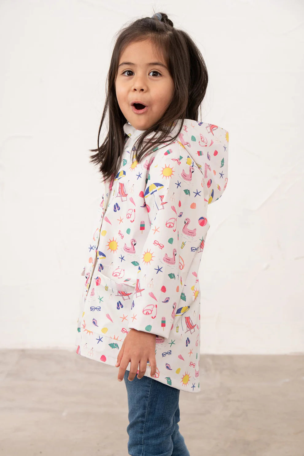 Based on the classic style of the fisherman's mackintosh, Heidi takes the idea and adds a large spoonful of fun and colour. Days spent by the sea can be negotiated with ease in this waterproof and windproof coat, which boasts critically welded seams. Money for ice creams or other essentials can be stored in the two front pockets.