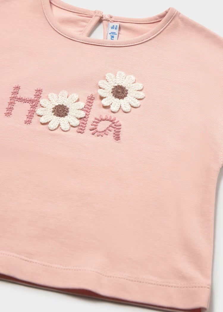 Mayoral Blush 'Hola' Flower T-Shirt