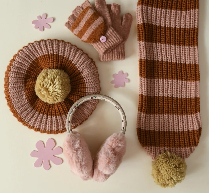 Keep warm this winter in our fluffy wildflower earmuffs. In a funky flower shape with velvet centre, and a gold shimmering comfort fit band, these are a must have for winter adventures.