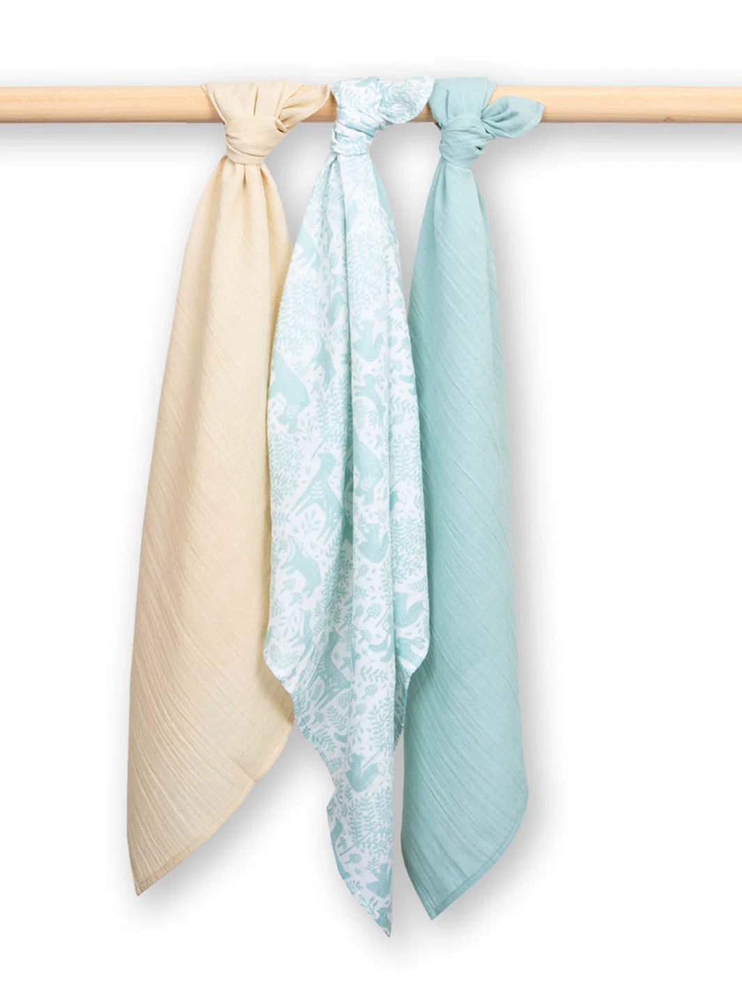 Designed for dribbles, feeding and comforting too. These absorbent organic muslins come in our coordinating Woodland Walk, plain latte and soft thyme designs. The perfect gift for new parents.