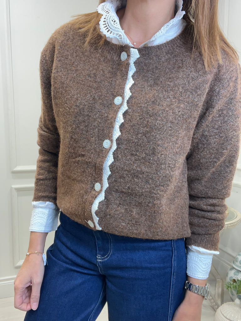 Crochet Trim Cardigan Brown