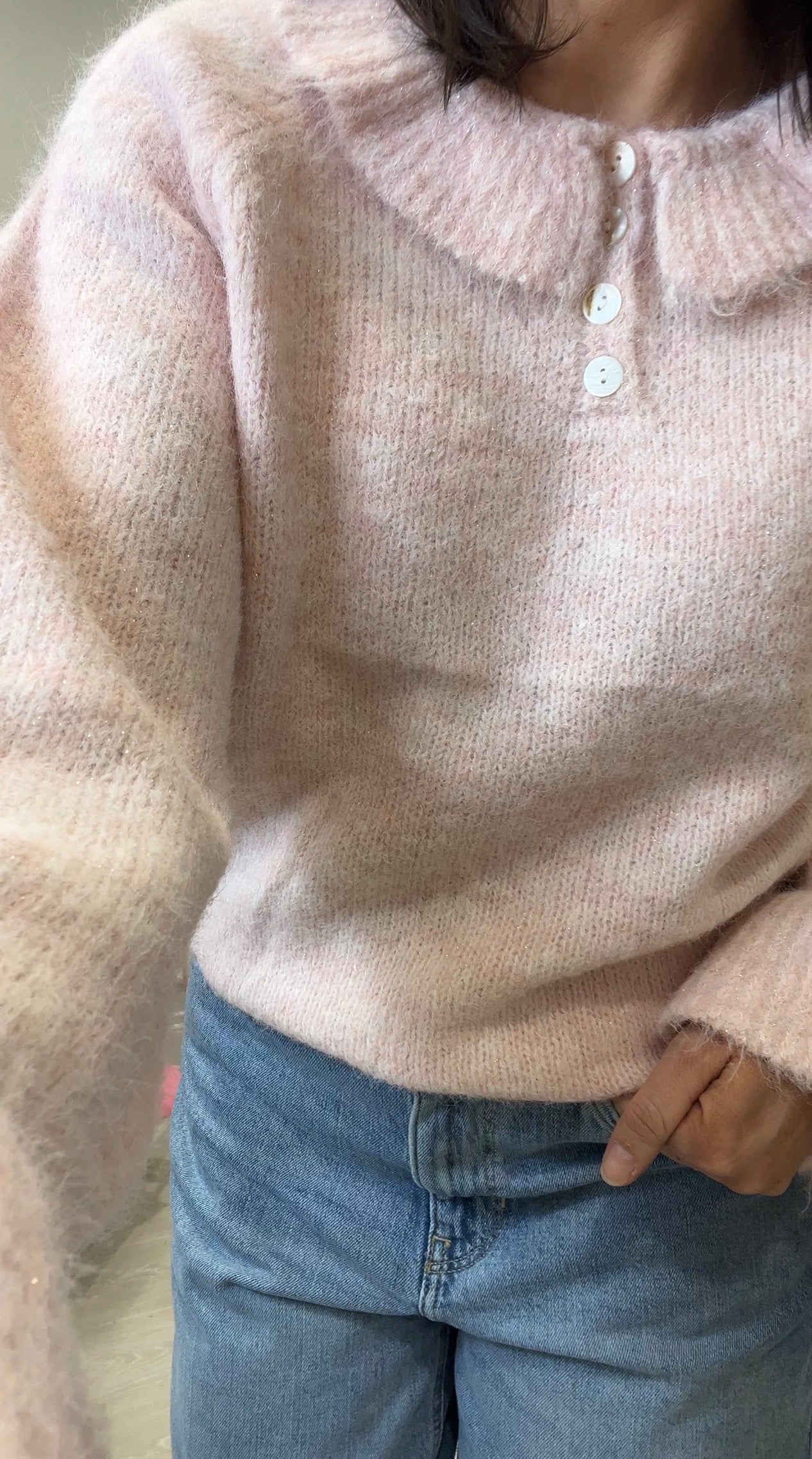 Soft Knit Ruffle Collar Sweater Pink