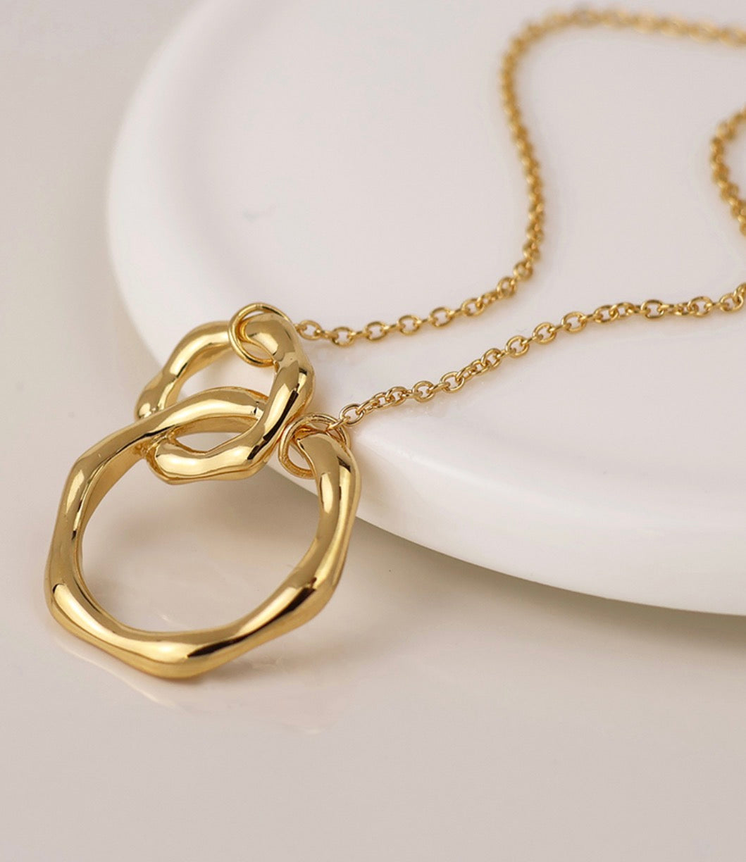 Sterling silver, gold plated necklace with gold interlinked hoops.