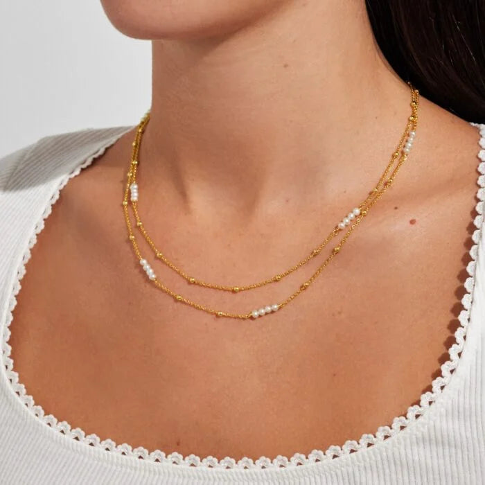 Joma Jewellery - Loved by You 'Double Layered Pearl Chain' Gold Plated Necklace
