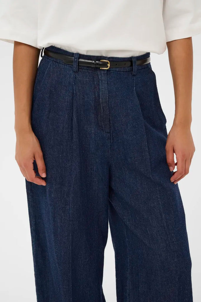 Wide leg trousers with tailored pleat, high waist, and structured waistband. Relaxed fit delivers modern proportions with subtle front crease and full-length design.