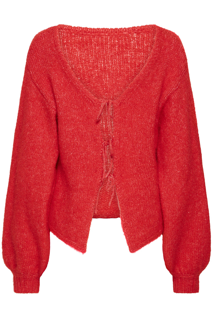 The Dabria Cardigan is a cozy knit piece in a warm, inviting red shade. Featuring versatile tie closures, you can style the ties at the front or the back to suit your mood or outfit. This cardigan adds both comfort and a touch of effortless charm to your wardrobe, making it an easy go-to for layering on cooler days.