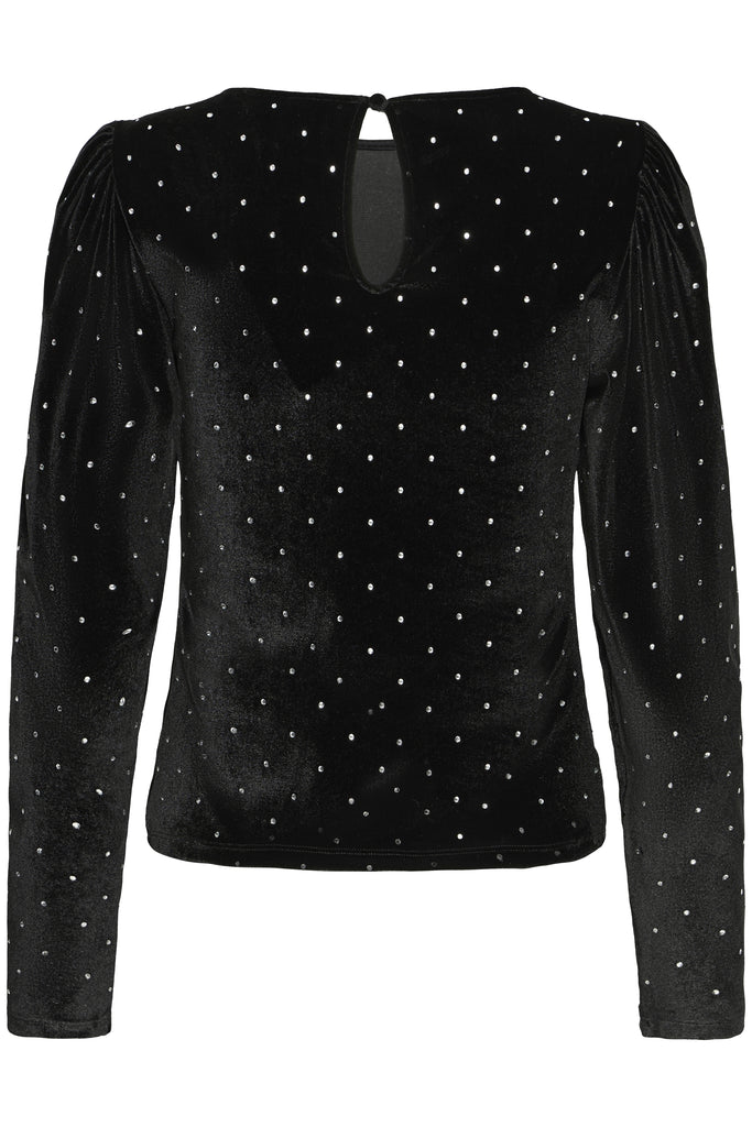 The Darla Long Sleeve Top combines elegant black velvet-look fabric with subtle diamante accents for a touch of sparkle. Its long sleeves offer comfortable coverage, making it perfect for both day and evening wear. This top effortlessly adds sophistication to any outfit while keeping you feeling confident and stylish.