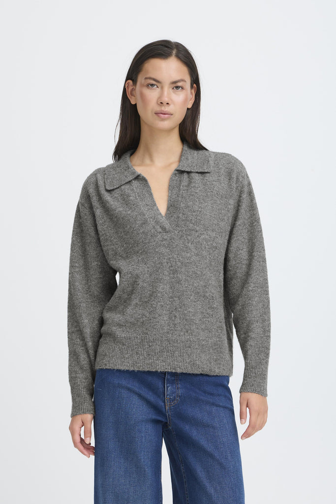 The Macon Pullover in Birch offers a timeless dark grey knit design with a classic collar, making it a versatile and essential addition to any wardrobe. Its soft texture and neat finish ensure both comfort and style, perfect for layering or wearing on its own. This pullover combines traditional charm with everyday wearability to support your effortless, polished look.