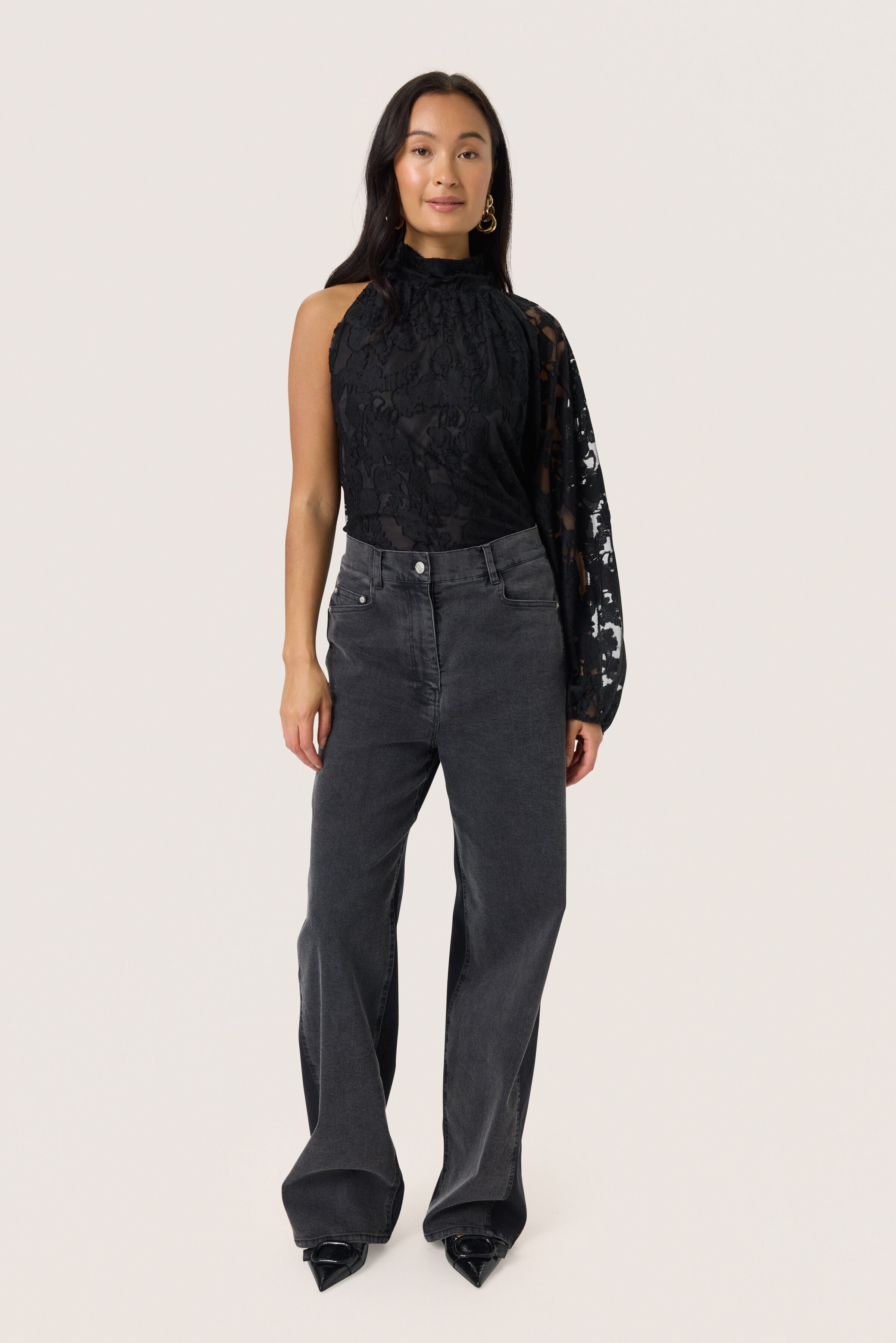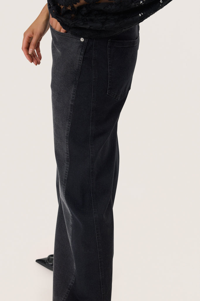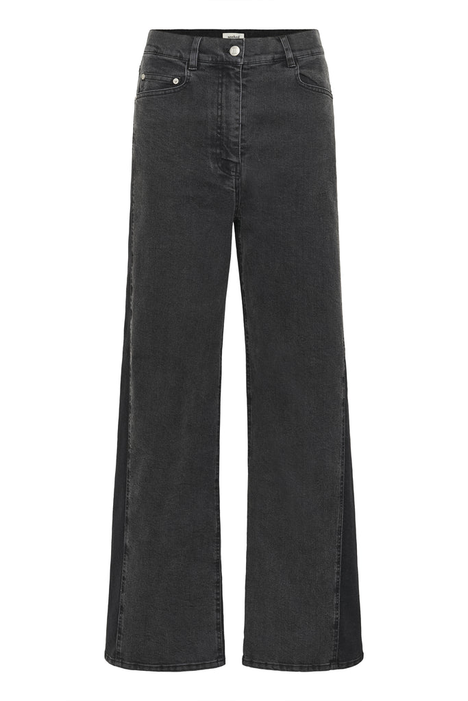 Discover comfort and style with the Rhea Jeans, crafted from washed black denim for a worn-in, versatile look. Their long, wide-leg cut offers a relaxed fit that moves with you, perfect for everyday wear. Whether dressing up or down, these jeans provide a flattering silhouette while keeping you comfortable all day. Ideal for those seeking effortless style without sacrificing ease.