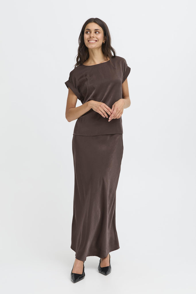 The Shina Blouse features a lovely chocolate brown shade with a satin-look finish that brings a touch of elegance to your everyday wardrobe. Its short sleeves provide comfort and ease, making it perfect for both casual and dressier occasions. This blouse is designed to enhance your confidence while offering a stylish, smooth feel against the skin.