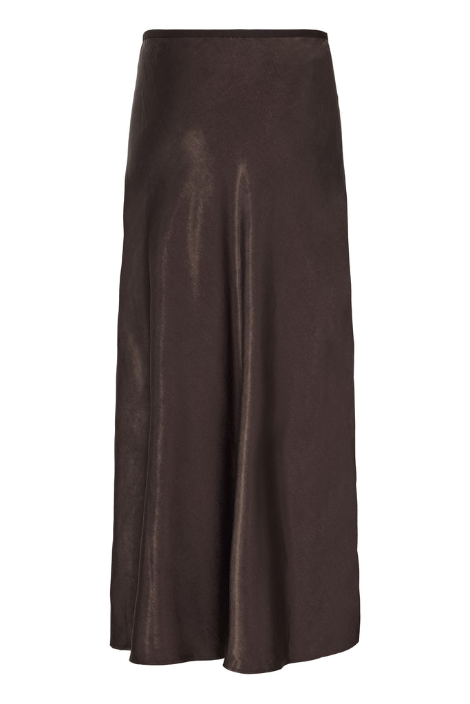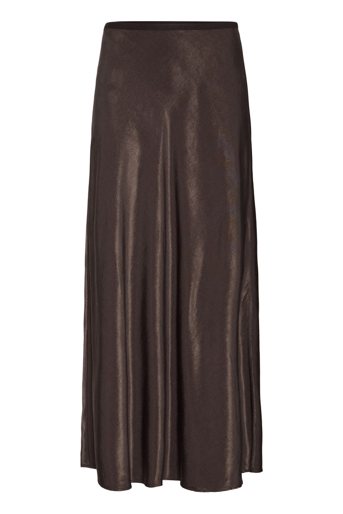 The Shina Skirt offers a smooth satin feel that drapes beautifully for comfortable all-day wear. Its rich chocolate brown shade adds a touch of warmth and versatility to your wardrobe, easily pairing with a variety of tops and accessories. Perfect for both casual outings and dressier occasions, this maxi skirt combines elegance with effortless style.