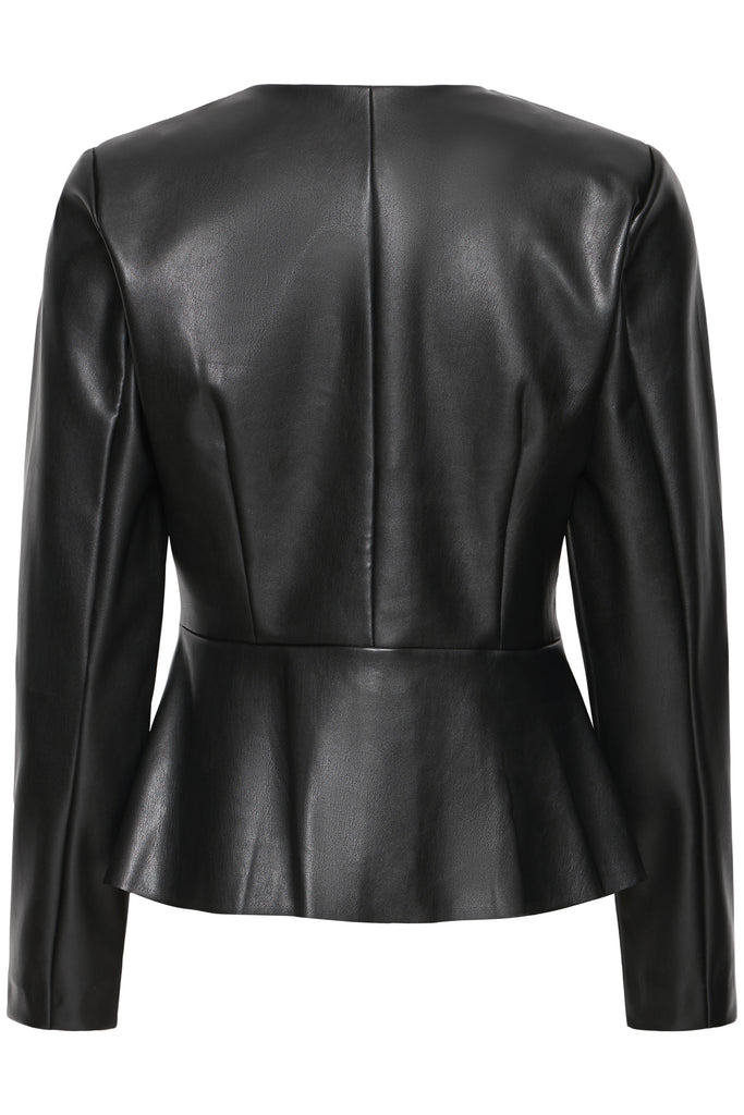 The Zoma Jacket blends elegance with modern style, featuring a beautiful leather-look finish that adds a touch of sophistication. Its peplum fit waist accentuates your silhouette for a flattering and confident look. Perfect for elevating everyday outfits or adding polish to evening wear, this jacket offers both style and comfort.